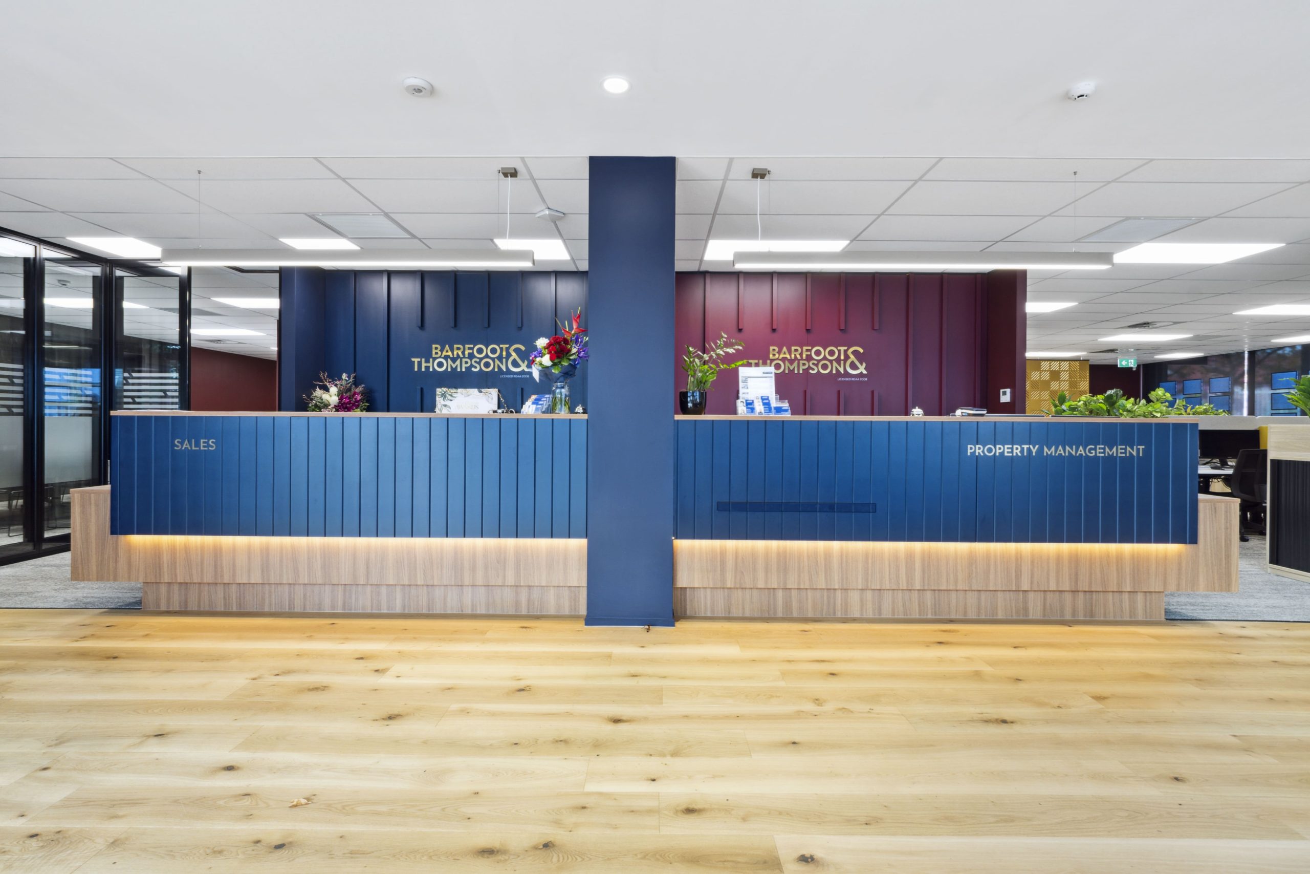 A mix of cladding and detailing adds visual interest while ensuring the building sits comfortably within its town square setting. Inside, natural tones, glazing treatments and furniture reference Pukekohe’s rustic character, while Barfoot & Thompson’s signature colours are reinterpreted in a softer, refined palette.
